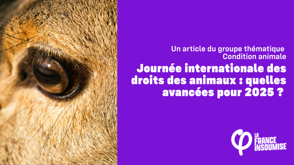 Dans le monde, la condition animale évolue lentement. La question du droit à la vie et au bien-être des animaux reste posée, surtout en ce qui concerne les animaux d’élevage, ceux utilisés pour l’expérimentation animale et les animaux sauvages. Dans le cadre de la 6e République, la France insoumise propose de constitutionnaliser le droit des animaux à être protégés, mais aussi la fin de l’élevage intensif et de toutes les pratiques cruelles qui y sont liés, la diminution de 50% de la consommation de protéines animales, la fin des pratiques de chasse et de pêche cruelles,  la préservation des espèces animales sauvages, la protection des animaux dits de compagnie et une cohabitation pacifique avec les animaux liminaires.